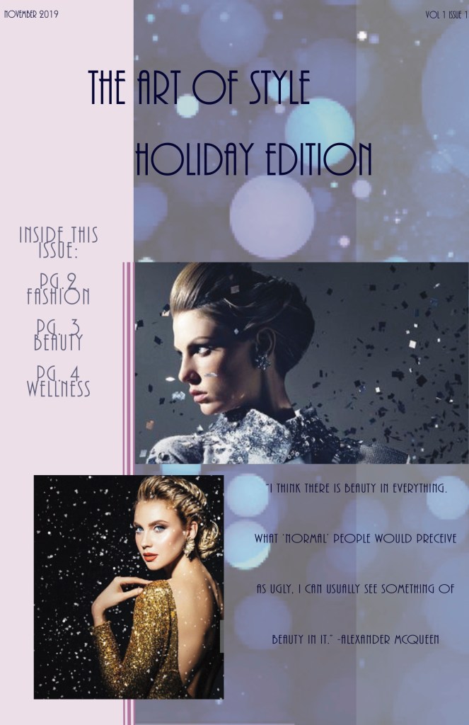 For my third project I created a newsletter with the help of InDesign. With this I was able to expand from my logo design. I used some of the tools I learned while working on previous projects and put them to use. With various pictures I found on Getty and google I kept the same color scheme and feel throughout. The newsletter consisted of three different working color layers in total, but each page has a different layout. By using drop shadows and drop caps, when looking at each page individually you are able to see similarities wile still seeing differences. I did not want to use a lot of columns because I felt that it would take away from the fashion editorial feel of the newsletter.